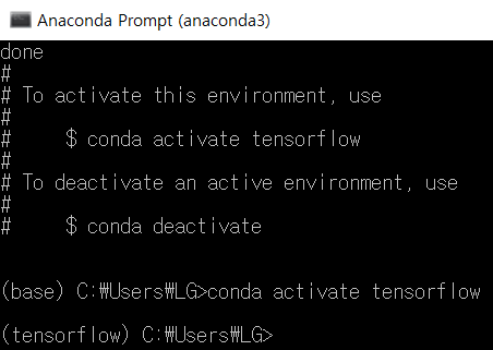 conda activate ๊ฐ์ํ๊ฒฝ์ด๋ฆ