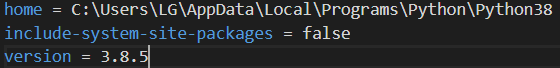 ๊ฐ์ํ๊ฒฝ ํด๋ ์์ผ๋ก ๋ค์ด๊ฐ์ pyvenv.cfg ํ์ผ์ VS Code๋ก ์ด์ด์ฃผ๊ณ