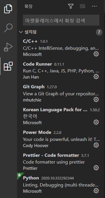 โฝ VS CODE ์คํ ํ Extension์ผ๋ก ๊ฐ์ ์๋์ ๊ฐ์ด Python์ ์ค์นํด์ค๋ค.
